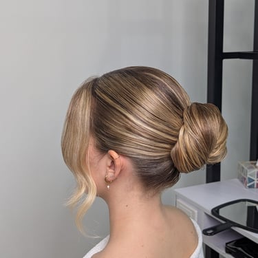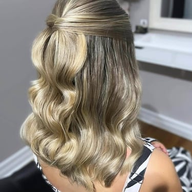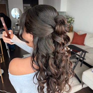 Here, you’ll find a diverse portfolio featuring styles designed for brides, bridesmaids, guests, proms, and other special events. From classic blowouts to half-up styles, elegant buns, and Hollywood waves, each look is crafted to match your style and the vibe of your day.